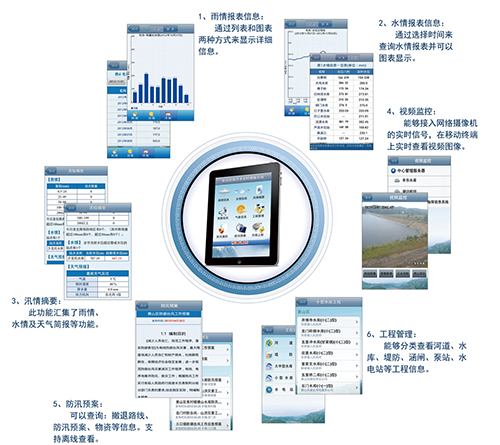 基于移動(dòng)網(wǎng)絡(luò),以智能移動(dòng)終端為載體的應(yīng)急防汛指揮及暴雨洪水實(shí)時(shí)監(jiān)測(cè)預(yù)警平臺(tái),用戶(hù)可以不受時(shí)間、地點(diǎn)、網(wǎng)絡(luò)(Internet)的限制,隨時(shí)隨地接收防汛指揮所需信息和數(shù)據(jù),第一時(shí)間掌握水雨情信息和山洪災(zāi)害的發(fā)生情況。為各級(jí)防汛指揮人員提供水雨情遙測(cè)信息、預(yù)警信息查詢(xún)以及災(zāi)情上報(bào)等功能。